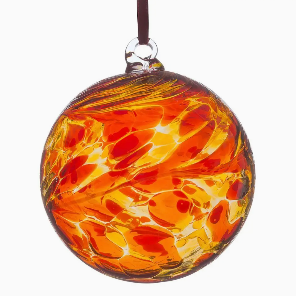 Hand blown glass Christmas bauble | Red and golden yellow