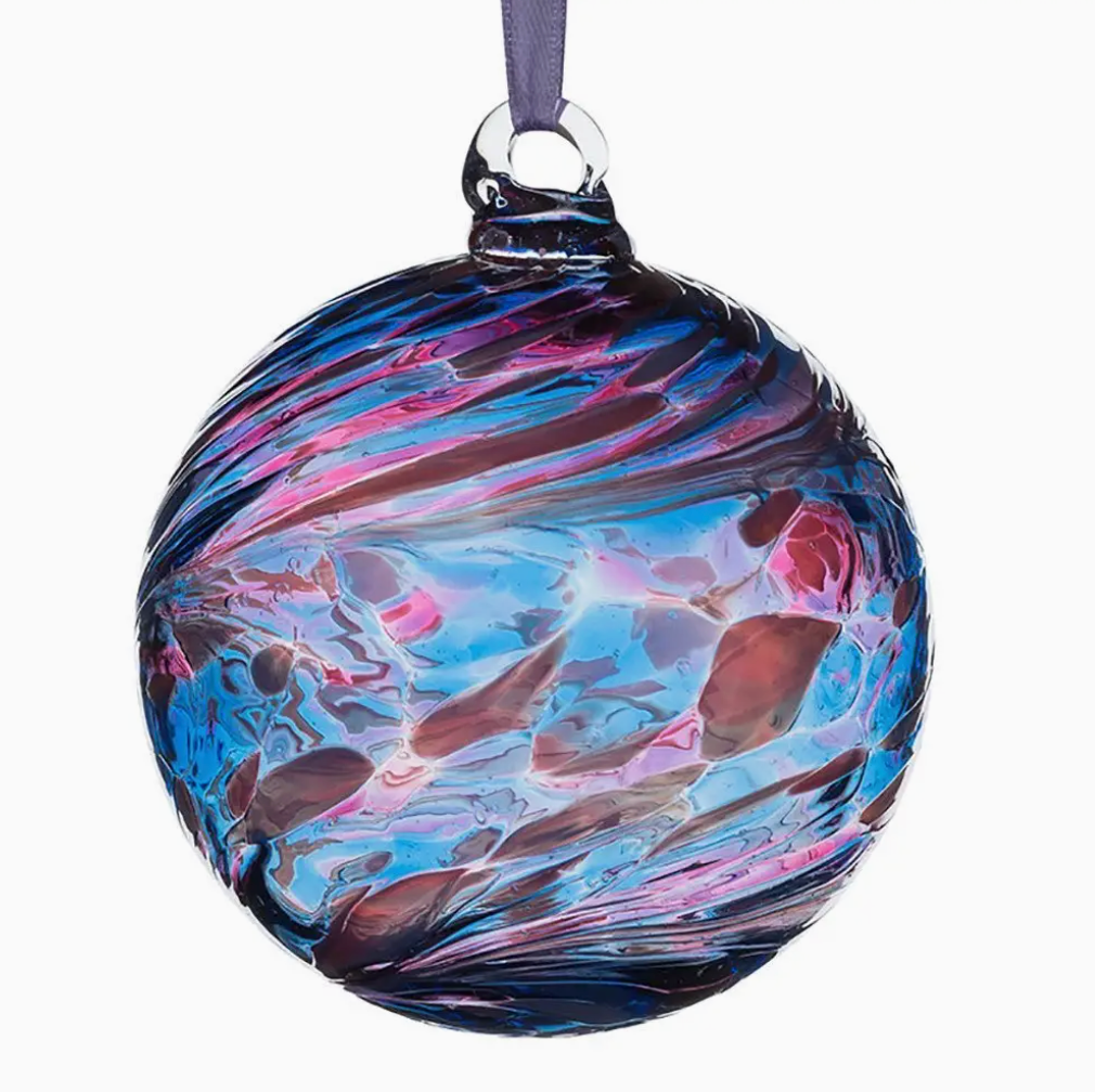 Hand blown glass Christmas bauble | Blue and pink