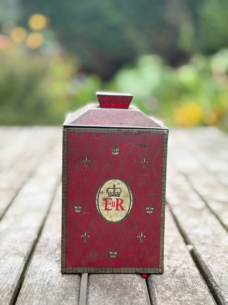 Heroically battered, this 1953 biscuit tin is ideally sized to store seed packets. A perfect accessory for your potting shed.